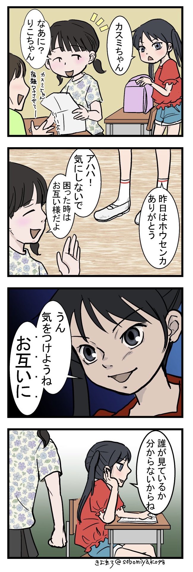 この投稿に、読者の皆さんからは「なんだか、カスミちゃんの将来が怖いです」と思わぬ犯人に驚いた声や、「お嬢強い!」「りこちゃんは良い女だね!」とりこさんの力強さに心打たれた旨の声が寄せられていました。