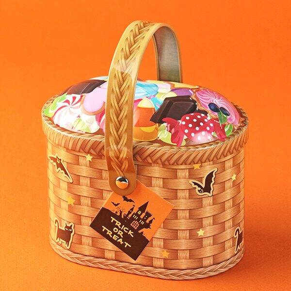 プチギフトや小物入れにも。「ハロウィン スイーツバスケット缶」