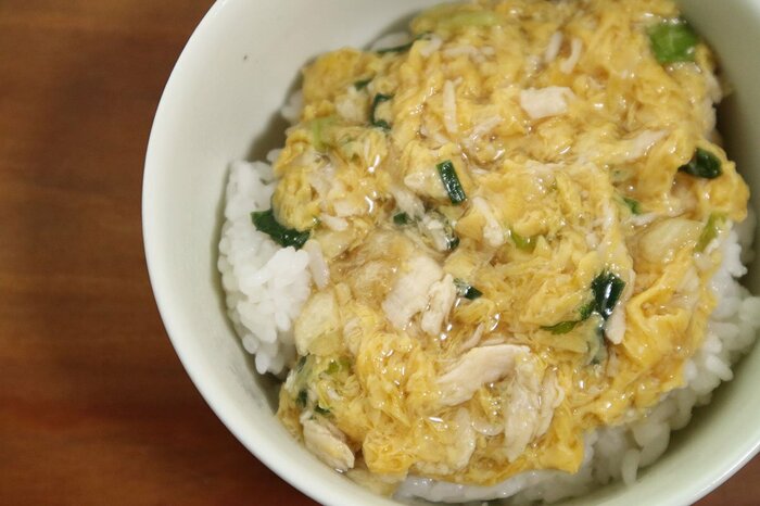 香りもしっかり親子丼。お醤油とみりんの、いつもの匂いですね。食欲そそるわ~。