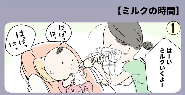「はーい ミルクいくよー」哺乳瓶をシャカシャカと振りながら、お子さんに話しかけるトラ太郎さん。赤ちゃんは、とっても欲しそうに「はっはっはっ」と哺乳瓶を見つめますが…?