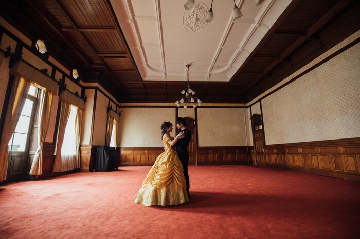 ツイッターに投稿されたドレスは、心が通い合ったベルと野獣がふたり、ホールで踊る際の黄色のドレスを再現したもの。2020年5月に開く予定だった結婚式のお色直し用ドレスとしてオーダーメイドで作成したものだったそう。洋館の雰囲気も相まって、世界観が完璧すぎます…。