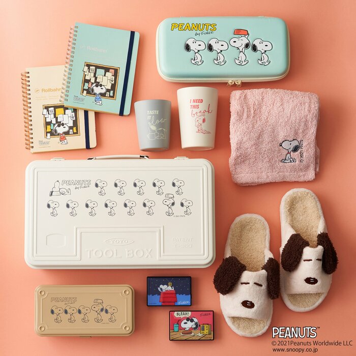 今回は、スリッパやブランケット、タオルをはじめ、タンブラーや収納ボックス、ステーショナリー類など、おうちで使えるアイテムを中心としたラインアップがそろいました。おうち時間がベースとなった生活スタイルをアップデートしてくれるような、キュートなPEANUTSアイテムがゲットできそうですね。