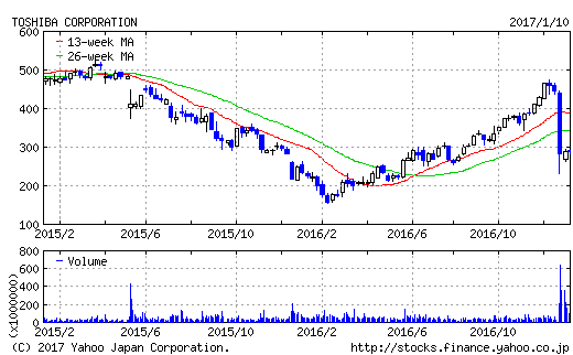 説明会翌日の11日、同社の株価は大幅高で引けました。そこで思い出されるのが、昨年の東芝の株価は春先から上昇に転じ、今回の減損巨額問題が明らかになる直前までは、シャープ(6753)と並び大幅な株高を演じていたことです。そこから「去年の美味しい思いをもう一度」と期待して買っている個人投資家の方も少なくないことが伺えます。