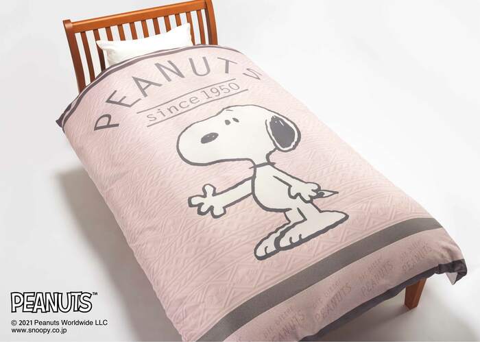 デザインは、落ち着いたフェミニンテイストの「bit bitter PEANUTS」と、スヌーピーと兄弟たちの仲睦まじい様子を描いた「SNOOPY’s BROTHERS」の2種類。カバーリングや掛けふとん、毛布、敷きパッドなど、寝室をトータルコーディネートできるラインナップがそろっています。それでは、アイテムの特徴を見ていきましょう。