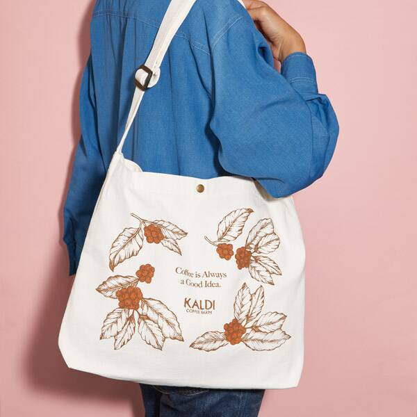 バッグはコーヒーチェリーのイラストをあしらったデザイン。内ポケット付きでショルダー部分は長さ調節が可能です。