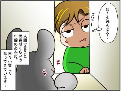 しかし、あみだちゃんは、ちらりと祭さんのほうを見たものの、すぐにぷぃっと後ろを向いてしまいます。明らかに聞こえないフリ。以前なら、「おやつ」と聞けば、すぐに飛んできたのに…。