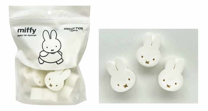 ころんとした形がかわいい、ミッフィー型のメイクアップスポンジです。12個入りです。