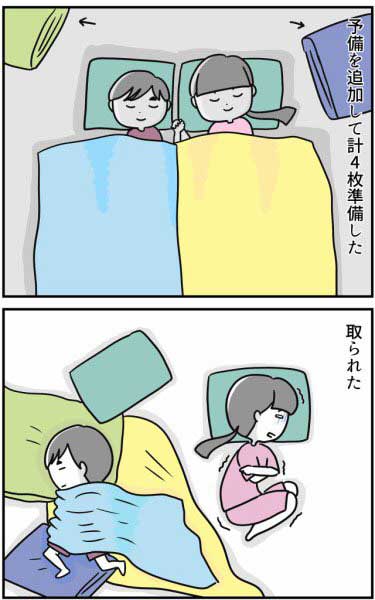 ならばと、取られたとき用の“予備”のタオルケットまで用意して、準備万端です!