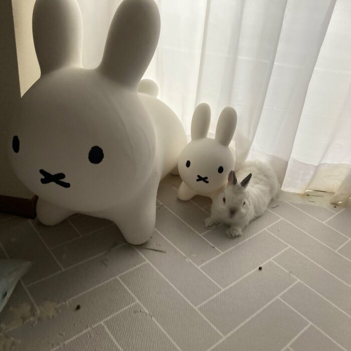 うさぎに首ったけさんにお話を聞いてみたところ、「ブルーナボンボンにはわりと登ったり、寄り添ったり、下に潜ったりして遊んでくれています」とのこと。