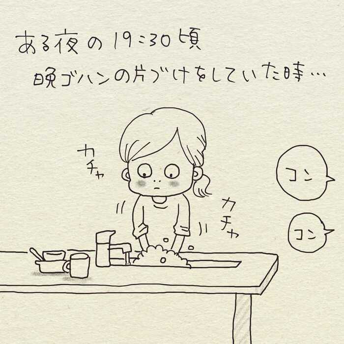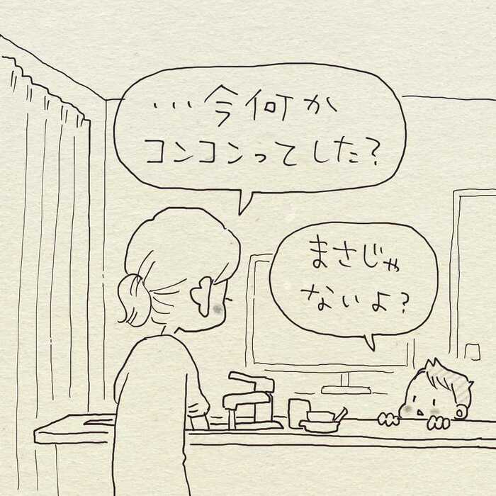 最初、息子さんが何かしたのかと思い聞いてみますが、どうやら違うよう。そんなやり取りをしているうちに、また窓からは「コンコン、コン」…。