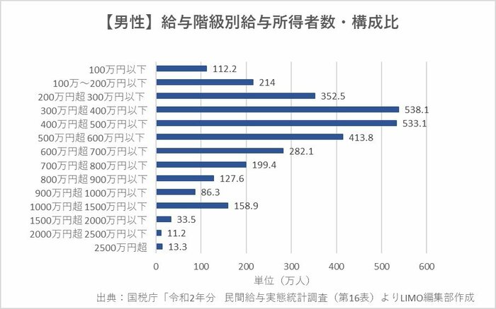 【男性】給与階級別給与所得者数・構成比