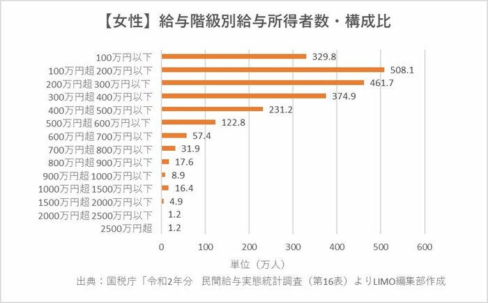 【女性】給与階級別給与所得者数・構成比