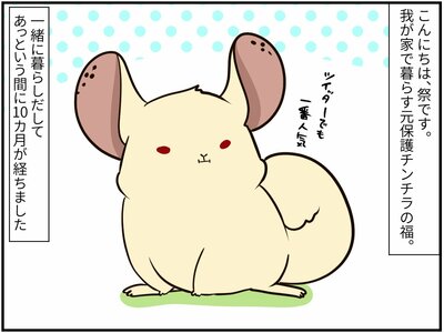 元保護チンチラの福くんが祭さんの家で暮らすようになって10カ月。最初は警戒心の塊だった彼も今では…?
