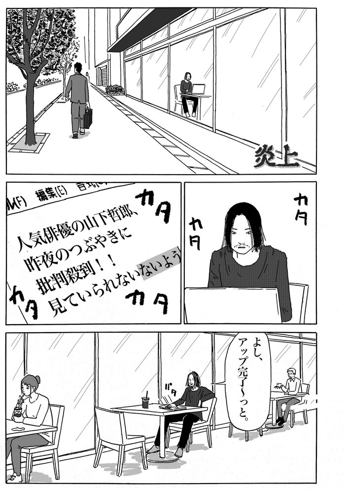 主人公は、ネットニュースで記者をしているある男。事実を誇張するような記事を書き、有名人を炎上させることで注目を集める仕事をしていました。ところがあるとき…。