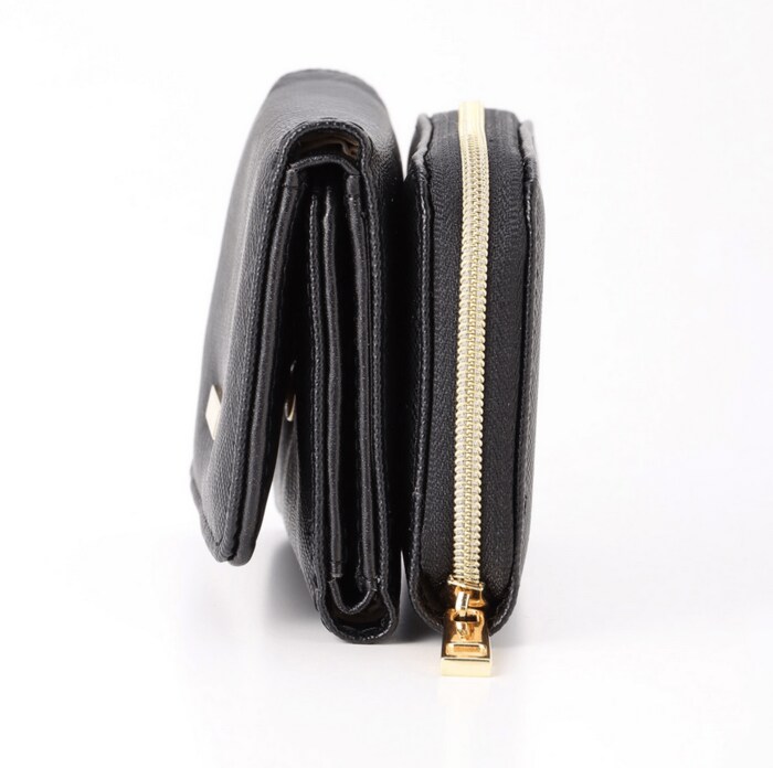 中でも一番の特徴といえるのが、上品なゴールドプレート。4色のカラーそれぞれと相性がよく、アクセントになっています。また、使い勝手ですが、前と後ろで小銭とお札を分けての収納が可能です。ファスナー開閉で安心の小銭入れ部分は仕切り付きとなっています。カードポケットやオープンポケットも充実しているので、コンパクトながらも必要なものはこれ一つで収納できそう。小さめのバッグにも入るので、1つ持っていると重宝するアイテムです。