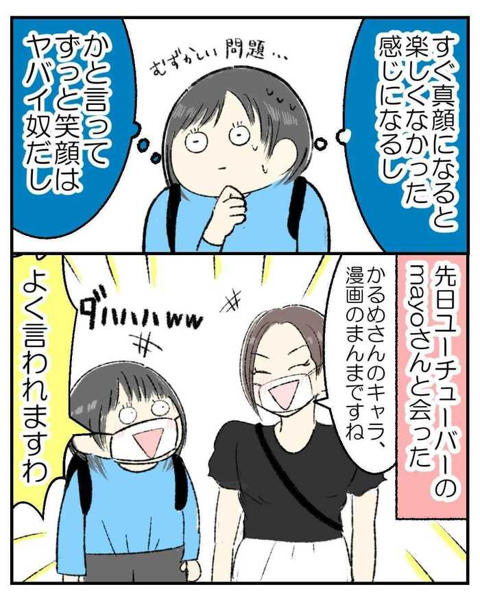 以前から、かるめさんは「どのタイミングで笑顔を真顔に戻すのか?」で悩んでいたんだそうです。例えば、人とお別れするとき。