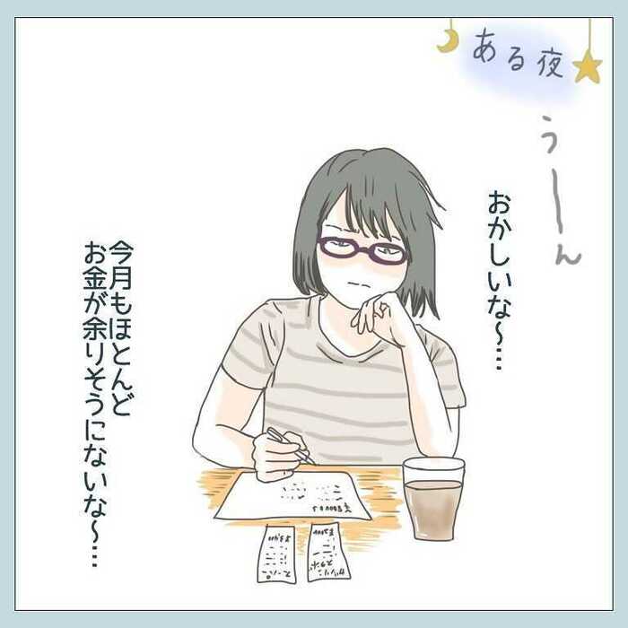 ある夜、家計簿を付けていたともさん。想像以上に家計からお金が出ていっていることに驚きます。