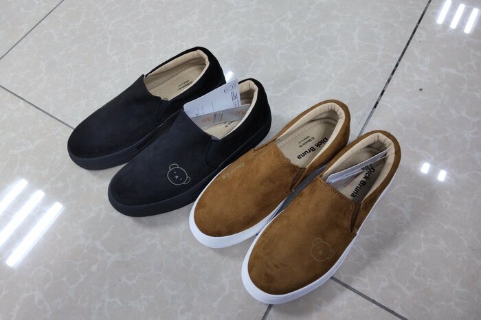 ミッフィースニーカーはブラックとベージュ、ボリススリッポンはブラックとブラウンの2色を展開しています。サイズはMサイズからLLサイズまでで、どちらも着脱しやすいシューズです。