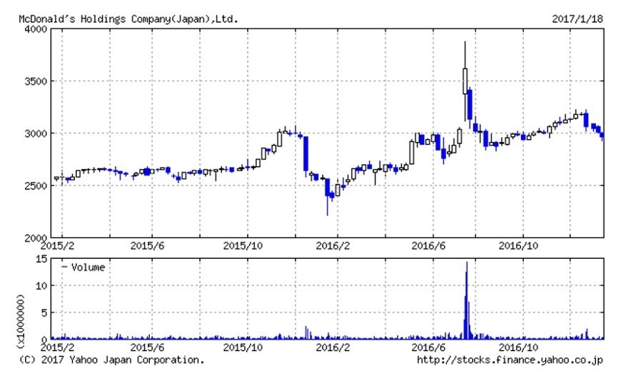 なお、2017年に入ってから、親会社である米国マクドナルドによる保有株売却の観測ニュースが流れたため、需給悪化懸念などにより上値が重くなっています。この件に関しては正式発表を待つ必要がありますが、大株主が変わることで今までにない斬新な取り組みが期待できるかもしれません。