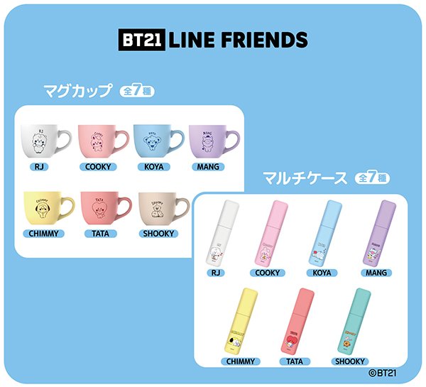 「BT21」の描き下ろしイラストを使用したオリジナルグッズが、10月22日(金)からローソンの一部店舗より発売します。商品は「マグカップ」と「マルチケース」となり、「BT21」の各キャラクターが展開されています。