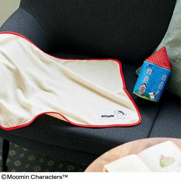 中でも、今回ご紹介する特別号の付録「ムーミンハウス型ポーチ&ミニブランケットセット」は、寒さが増した今の時期にピッタリのアイテムです。ふわモコ素材のミニブランケットには、ムーミンのタグが付いています。また、白地の生地の周りを囲む赤いトリミングも印象的です。ひざ掛けにもちょうどいいサイズ感もうれしいですね。