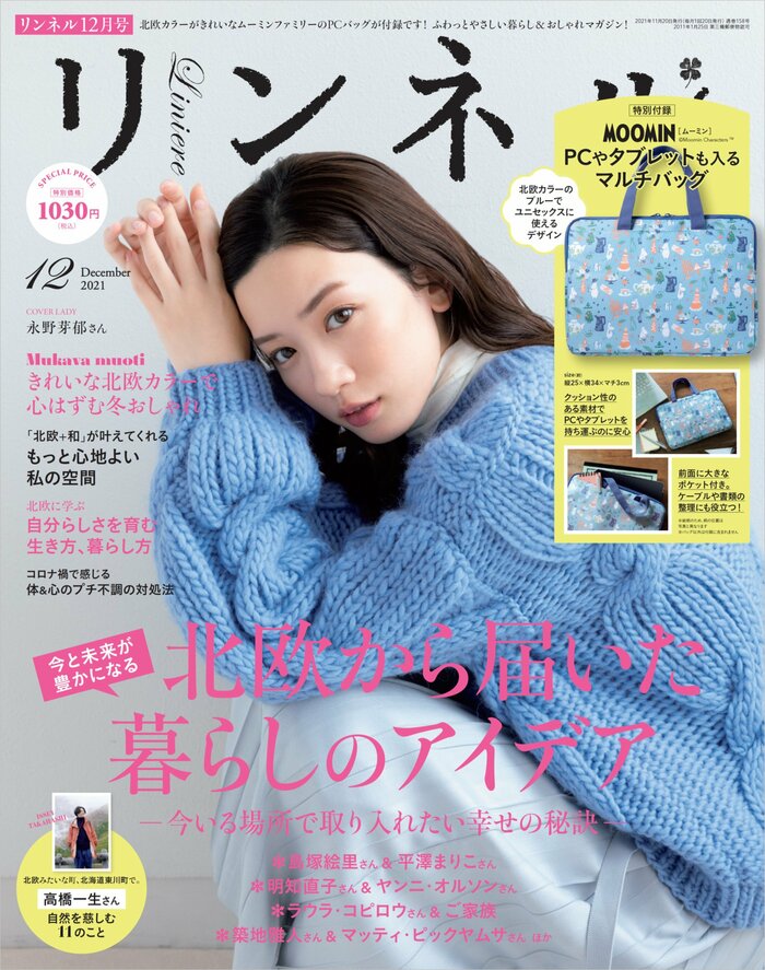 2021年10月20日(水)に発売された「リンネル12月号」は、世界的大人気キャラクターであるムーミンとのコラボレーションを実施。通常号・増刊号・特別号にそれぞれ別の付録が付く形で登場しました。