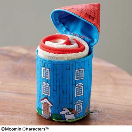 そして、ミニブランケットは丸めてポーチに収納することができます。収納すると、あっという間にムーミンやしきが完成するという優れモノ。ポーチはミニブランケットを収納する以外に、ペンやハサミを立てて収納してあげることもできます。