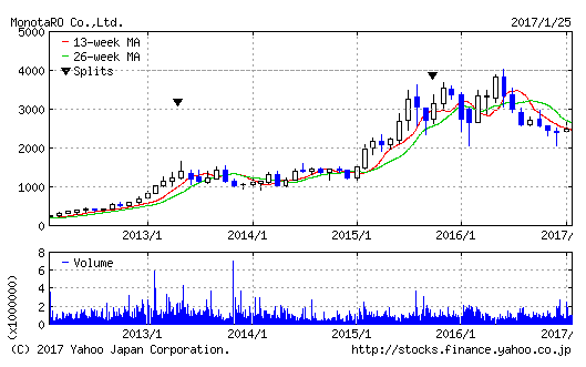 上場来高値は2016年6月10日の4,025円であり、2011年12月末の173円からわずか4年半で23倍に上昇しています。なお、2016年年央以降の株価ややや軟調ですが、2011年12月末対比では14倍の水準と、長期では申し分のない上昇率を現在も維持しています。