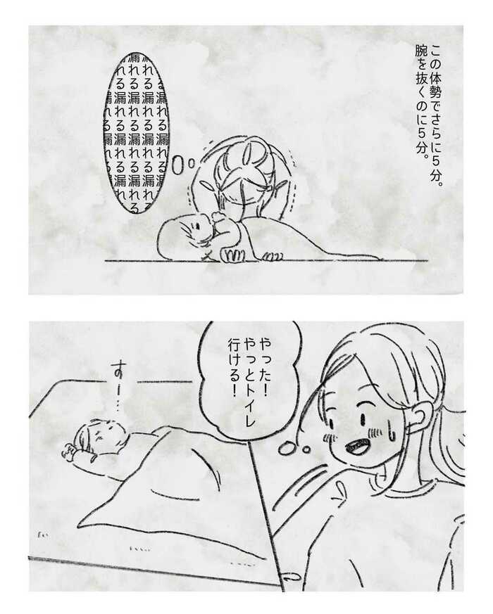 ようやく眠ってくれたお子さんを、時間をかけて静かにお布団に。「やった!やっとトイレ行ける!」眠るお子さんを置いてトイレに行こうとしたそのときでした…。