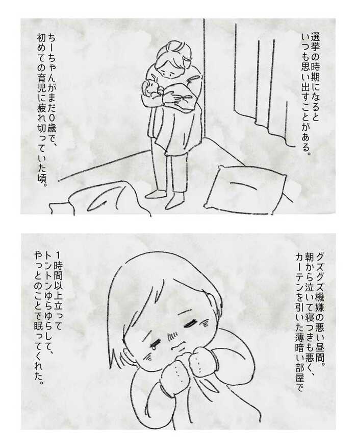 そんな選挙カーにまつわる投稿がSNSで話題になっていました。作者は、ご家族との日常をエッセイ漫画として発表している、やまぎしみゆきさん(@yukiyama_27)。インスタグラムに投稿した短編『選挙の時期に思い出すこと』に注目が集まっています。