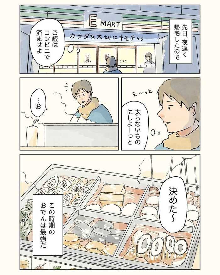 「太らないものにしよーっと」。あれこれ悩んでいたところで、目の前にはホカホカのおでんが…。買うことにしたのですが、不思議なことが起きたんだそうです。