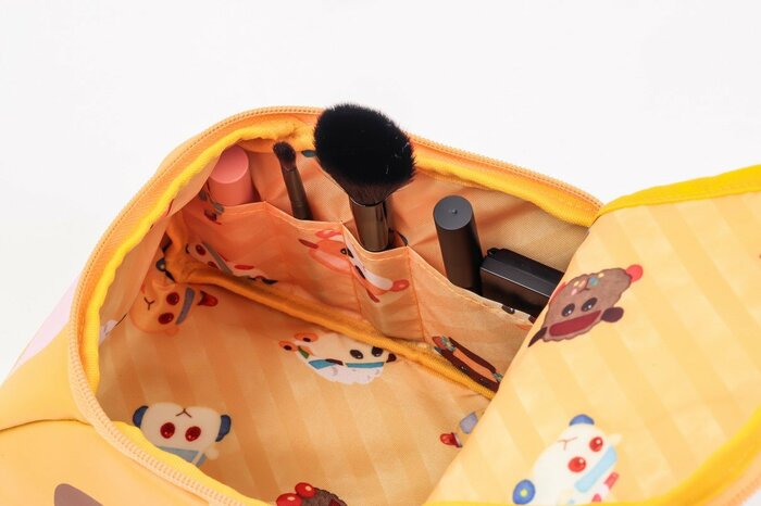 ポーチは、かわいらしいのにたくさんモノが入るちょうどいいサイズ感です。また、モルカーたちが大集合しているかわいらしい裏地も特徴。ポテト、シロモ、アビー、チョコ、テディ、パトモルカーや救急モルカーが大集合しているので、中をのぞくのも楽しみになりますね。