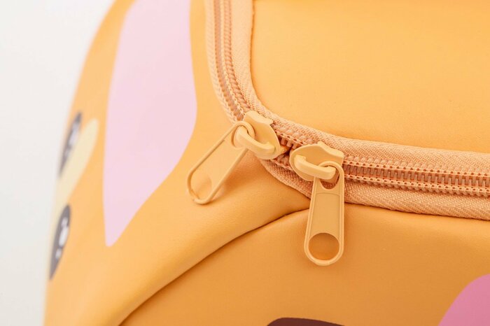 ダブルジップ仕様なので、開閉も楽ちん。お弁当箱などかさばるアイテムも取り出しやすいので使い勝手が広がります。そして、内側にはファスナー付きのメッシュポケットがあるので、散らばりがちな小物を収納するのにとっても便利です。合わせて、細長いアイテムを入れるのに便利なペンホルダーも付いているので、ペンやブラシなどの細長いアイテムも縦長のペンホルダーを使って収納できます。
