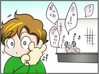 すると、明らかにまだまだケージの外で遊びたかったという様子のあみだちゃんは、不満気な声を上げ始めました。