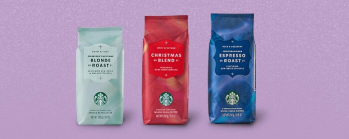 対象商品として発表されているのは、スターバックス® クリスマス ブロンド ロースト(250g)、スターバックス® クリスマス ブレンド(250g)、スターバックス® クリスマス ブレンド エスプレッソ ロースト(250g)の3種。
