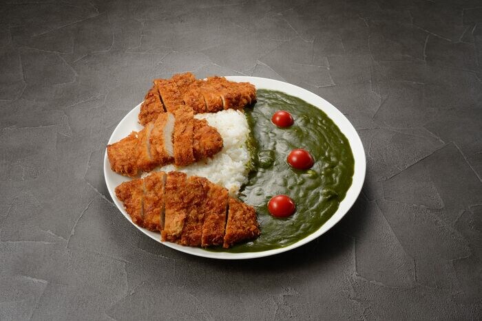 「驚異!機動緑のカレー」は、ジオン公国軍の巨大モビルアーマーとして名高いビグ・ザムの機体をイメージした商品。深緑色のカレーはドズル・ザビの苛烈な生き方を表現したスパイシーなチキンカレー。
