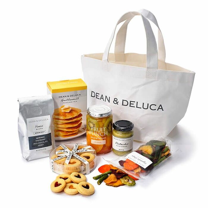 ・セット内容:DEAN&DELUCA HOUSE BLEND 粉 227g、DEAN&DELUCAフルーツポンチ、DEAN&DELUCA バターミルクパンケーキミックス450g、DEAN&DELUCA ピスタチオクリーム、DEAN&DELUCA ベジタブルチップス 60g、DEAN&DELUCA ハートジャムサンドクッキーアソート、DEAN&DELUCA ペーパーバッグ