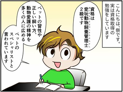 愛玩動物飼養管理士の資格取得を目指すことにした祭さん。しかし、いたずら盛りのチンチラさんを抱えての勉強は、思いのほか大変で…?
