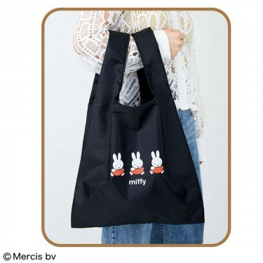 ブラックベースが大人っぽい、とても大きなエコバッグです。マチもしっかりしており、耐荷重も約5kgなのでスーパーなどでのおつかいでも活躍してくれそうです。畳んでもかわいい絵柄で、いつでもミッフィーを楽しめます。
