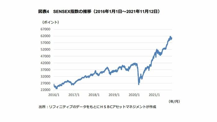HSBCアセットマネジメントの最新レポートによると、インド株式市場は2021年5月以降、新型コロナウイルスの新規感染者数の減少と景気回復期待の高まりを背景に上昇基調をたどっている。