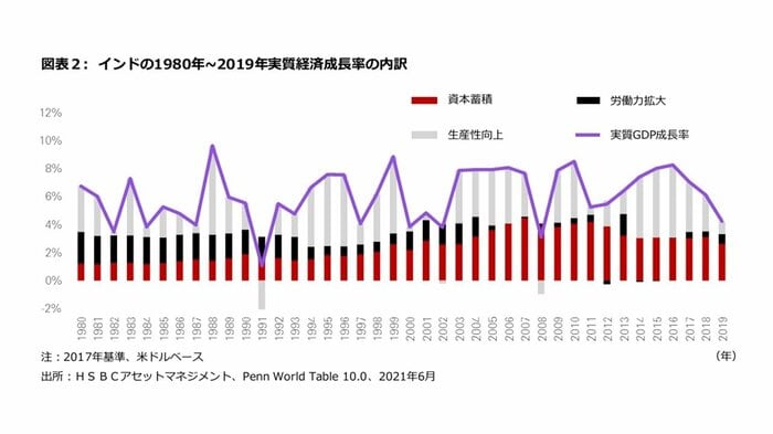 HSBCアセットマネジメントは最近の「China Insights(中国市場を見る眼~現地からの報告)」レポートで紹介した経済成長分析と同じ手法を使い、インド経済の先行きを推測した。