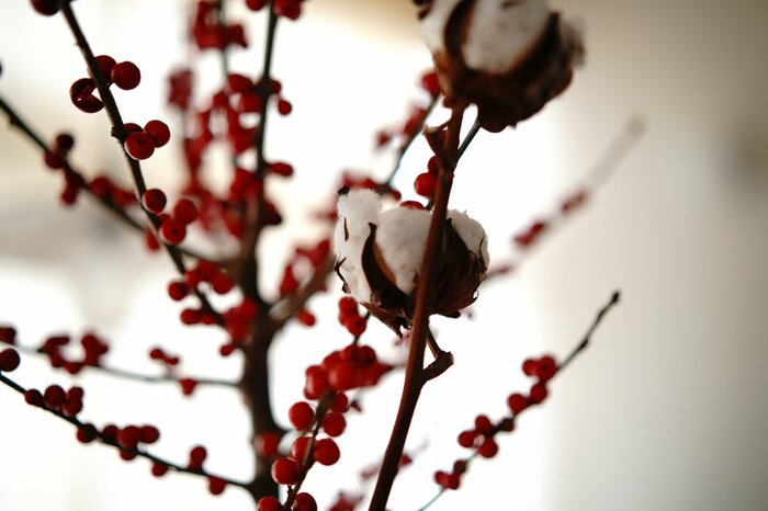 クリスマスツリーの雪を思わせる、まんまるのコットンフラワー。クリスマススワッグにも相性抜群の花材です。スワッグのアクセントにもぴったり。
