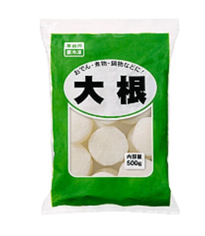 輪切りにした大根を湯通しし、急速冷凍した商品。凍ったまま必要な量だけ出して使えるので、無駄がなく時短料理にもぴったり。おでんや煮物、大根ステーキにしてもおいしいと主婦たちの支持も厚い一方、やはり食感が気になるという声もあるようです。