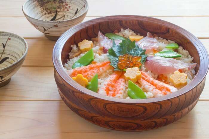 ひなまつりに食べるちらし寿司にも、春の味覚や彩りとしてサヤエンドウがのったりします。