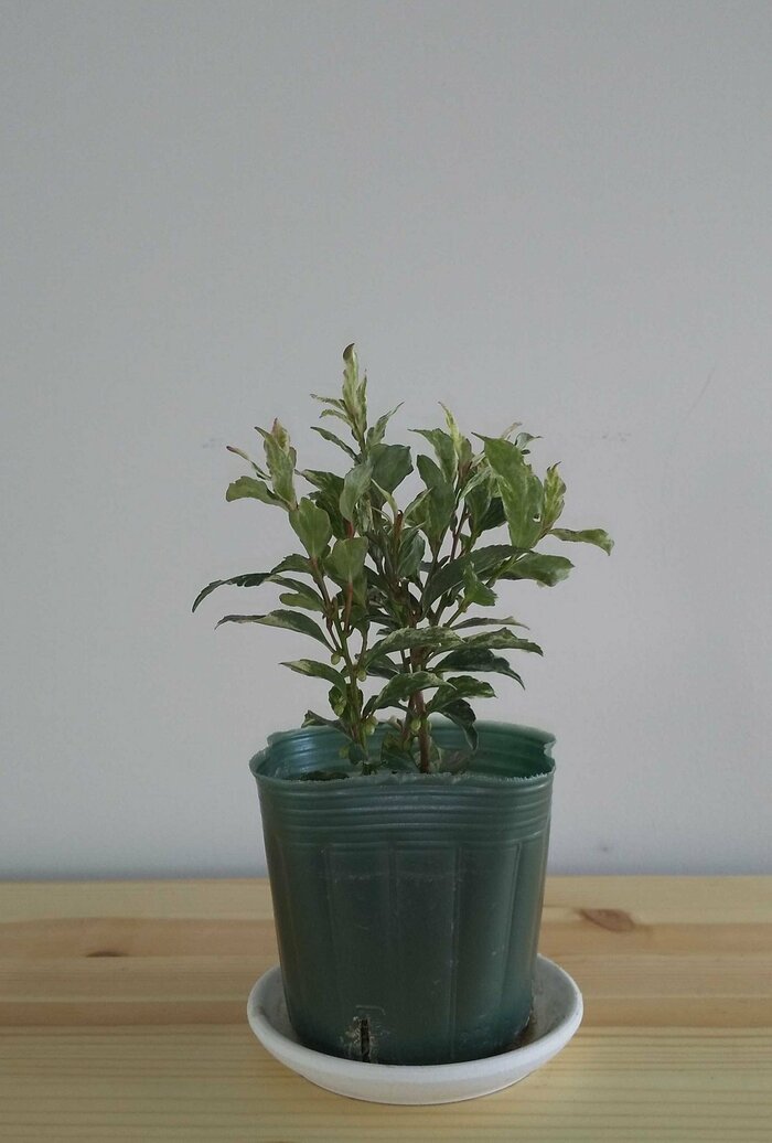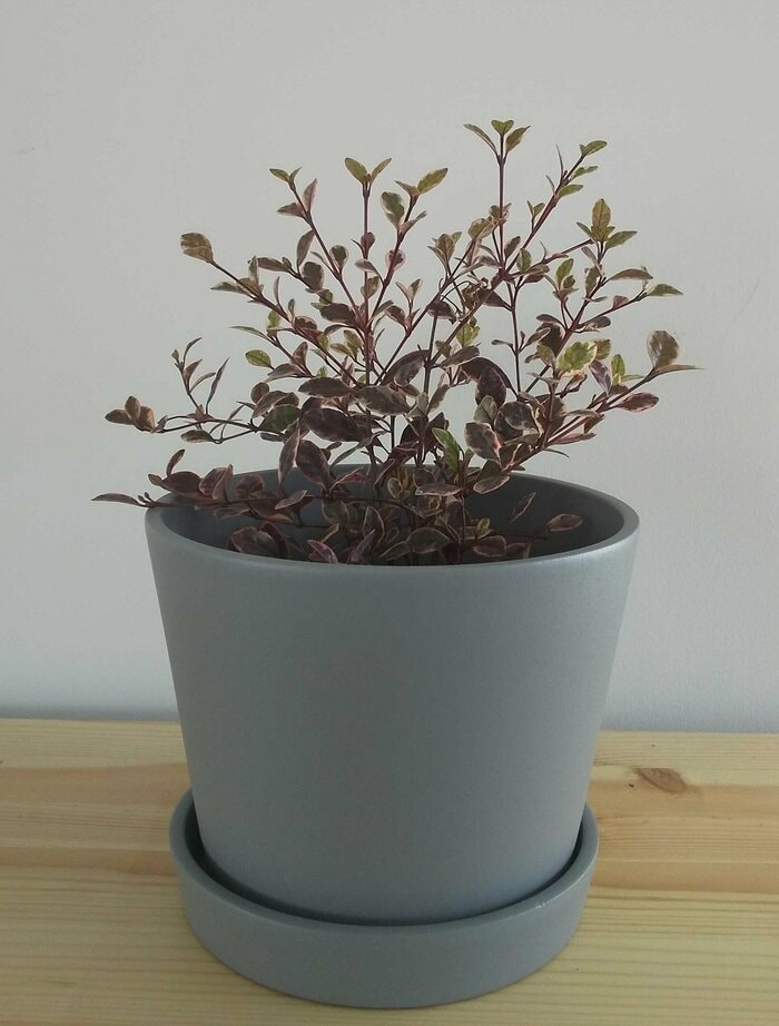 美しい葉が人気上昇中のロフォミルタス。寒くなると葉がピンクに変わり、一年中葉を楽しめる低木の観葉植物です。春になると生長期を迎え、葉は緑に変化します。6~7月には香りのある1.5センチ程度の白色の花をつけます。