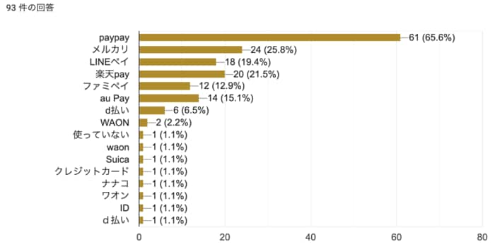 キャンペーンや還元率の高さからPayPayを利用する方が多いようですね。他にもメルカリが提供するメルペイや楽天ペイ、ファミリーマートが提供するファミペイなど、ご自身が普段使うサービスを利用されている方が多いようです。