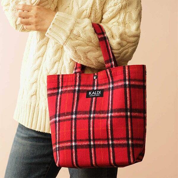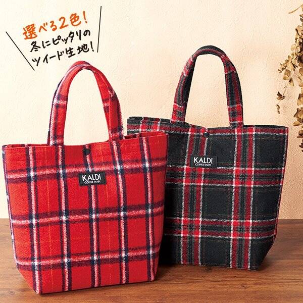 冬にピッタリなツイード生地に、温かみのあるチェック柄をデザインしたバッグです。赤と黒の2色から選べます。