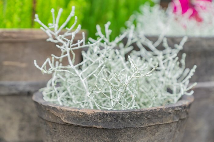 シルバーアクセサリーのように寄せ植えを彩ってくれる名脇役で、冬の寄せ植えには欠かせません。もちろんハボタンとも相性が良く、ハボタン中心の寄せ植えにぴったり。