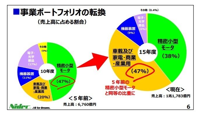 こうした取り組みにより、”お掃除ロボット”、”ドローン”などの新分野も含めて製品ラインアップを大きく拡充できることや、日本、アジアに加え、欧州・北米でのプレゼンスを高めることが可能になるため、家電・産業・商業用モータに関しても、これから飛躍が期待できることになります。
