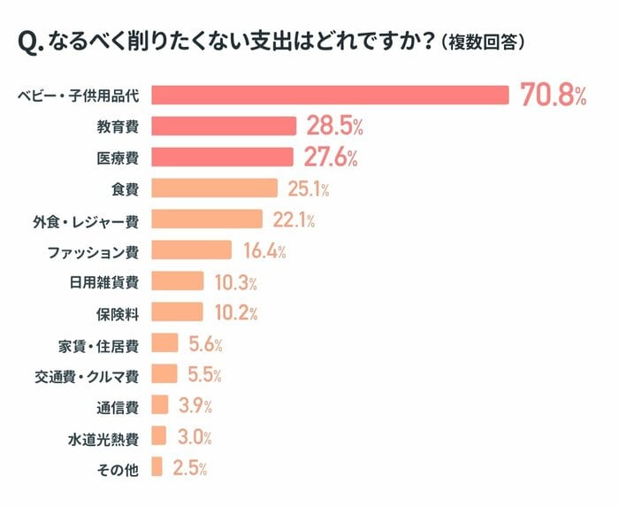 まずは同調査より、ママたちが削りたくないと思う支出をみていきましょう。